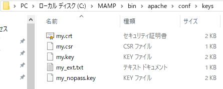 全て終えると C:\MAMP\bin\apache\conf\keys\ に各ファイルが出力される