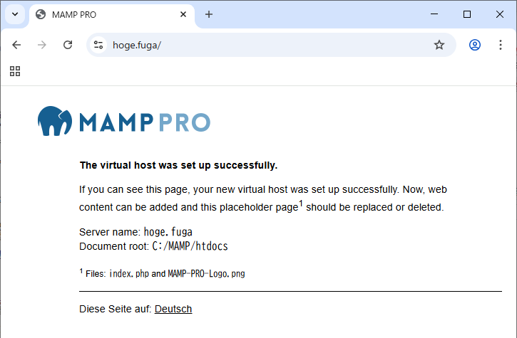 https://hoge.fuga/ にアクセスし、MAMPのindexページが出てきたら成功